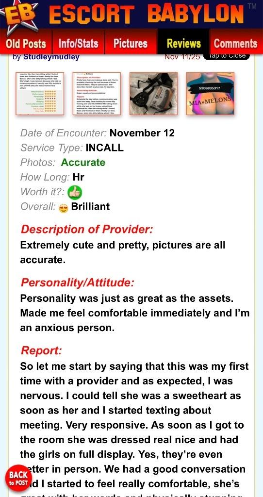 new number !!!!! ADD MY FANSLY (MIA_MELLONS) (subscribe for more excluise content ) ATTENTION I PREFER CALLS INSTEAD OF TEXTING !! IT HELPS ME WEED OUT THE TIME WASTERS (texting is okay but i respond faster to calls) MIA MELLOnS iS BACK calling all my boob lovers only ALL KINKS AND FETISHES WELCOME TABOO LOVER TITTY FUCK PRO(I love First Timers) 44J MASSIVE KNOCKERS (real boob men love real BOOBS and not fake hard ones ) Smaller BBw %100 real and can verify cute and classy ebony mixed princess Im also a MOMMY DOM (i love my littles and my SONS) BDSM PEGGING avail if your also into that breastfeeding fetishes welcome I also do webcam shows I dont do drugs or drink so dont offer %100 std free and have proof to show (mychart) shower available if you need with clean towels water bottle available also if I leave you thirsty AA welcome (no pimps or thugs ) Best way to describe my face super smooth clear skin(no pimples or marks on my face ) pretty smile with straight teeth dimples and pretty brown almond eyes often get told im easy to talk to ...come see why that is tested recently (DEC 18) test results below (clean &safe) hour bookings are my favorite Good service is not cheap (lets be clear ) im not a provider that does coke or meth !!! (red flag if you see these type of providers) im not the provider that has a room thats junky and smells like weed !!! im not a provider who is avail 24/7 (i actually have a job besides this ) if your the type of man who books any of these types of providers pleaseee stay away from me !!) KEEP IT CLASSY A am meeting Men, Women |